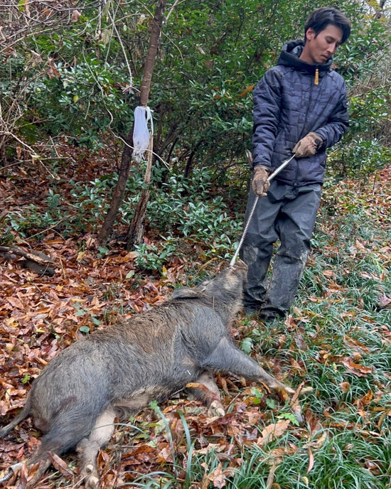 罠にかかった猪は、命がけで向かってくる。