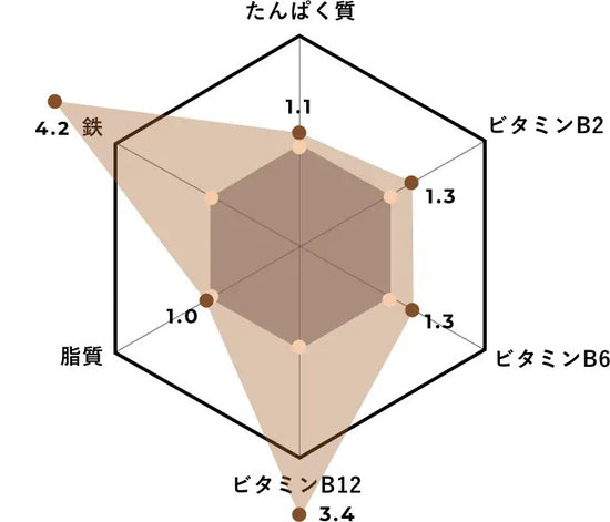 でも、鉄分は約4倍、ビタミンB12は約3倍と、栄養価はとても高い。